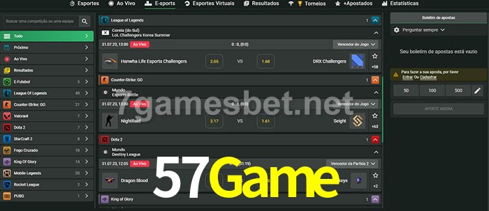 O 57Game oferece uma grande seleção de opções de apostas em e-sports com probabilidades competitivas